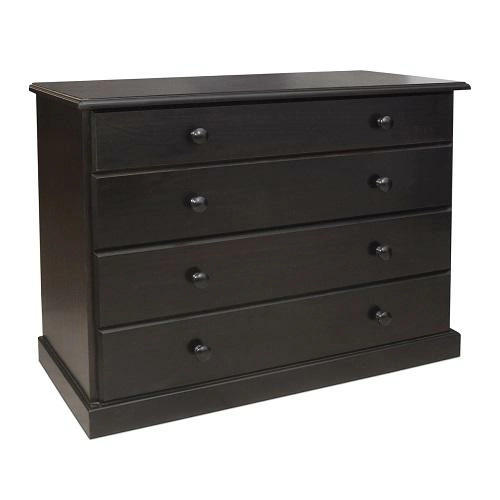 Cómoda de madera lustrada color wengue, con 4 cajones con herrajes metalicos.
