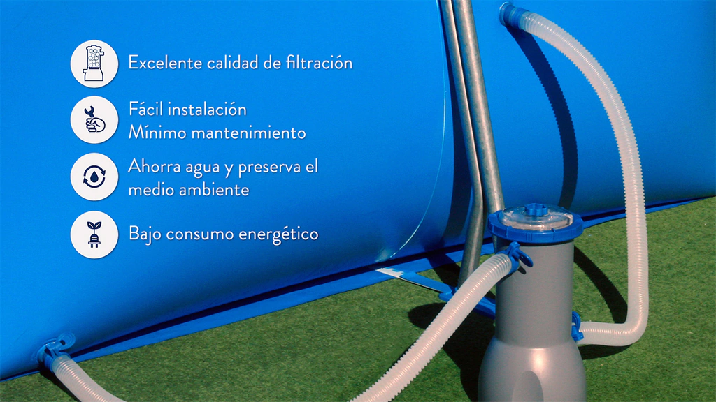 Bomba Portátil con un revolucionario sistema de filtrado con pompones. Capacidad de filtrado 3.800 lts./hora aprox. Apto para piletas de hasta 8.000 lts. Disfrutá la línea de productos y accesorios Pelopincho!, pensada para cuidar el agua y mantenerla limpia todos los días, toda la temporada. Mientras tanto, vos%u2026 ¡relajá! Para optimizar el filtrado del agua te recomendamos usar el filtro con el Kit de Limpieza.