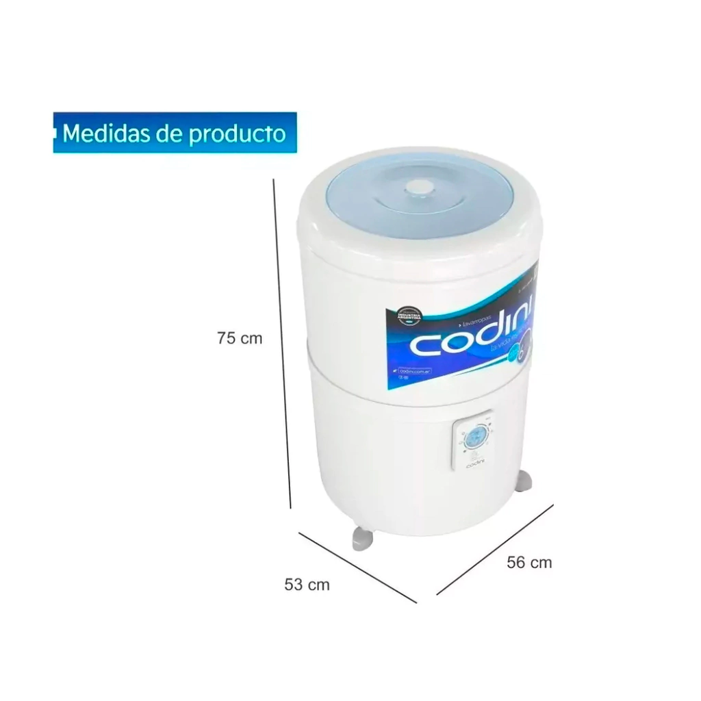 Lavarropas Codini semiautomático Silent 4051 redondo con comando frontal . Capacidad de lavado 10kg. Sistema de lavado oriental