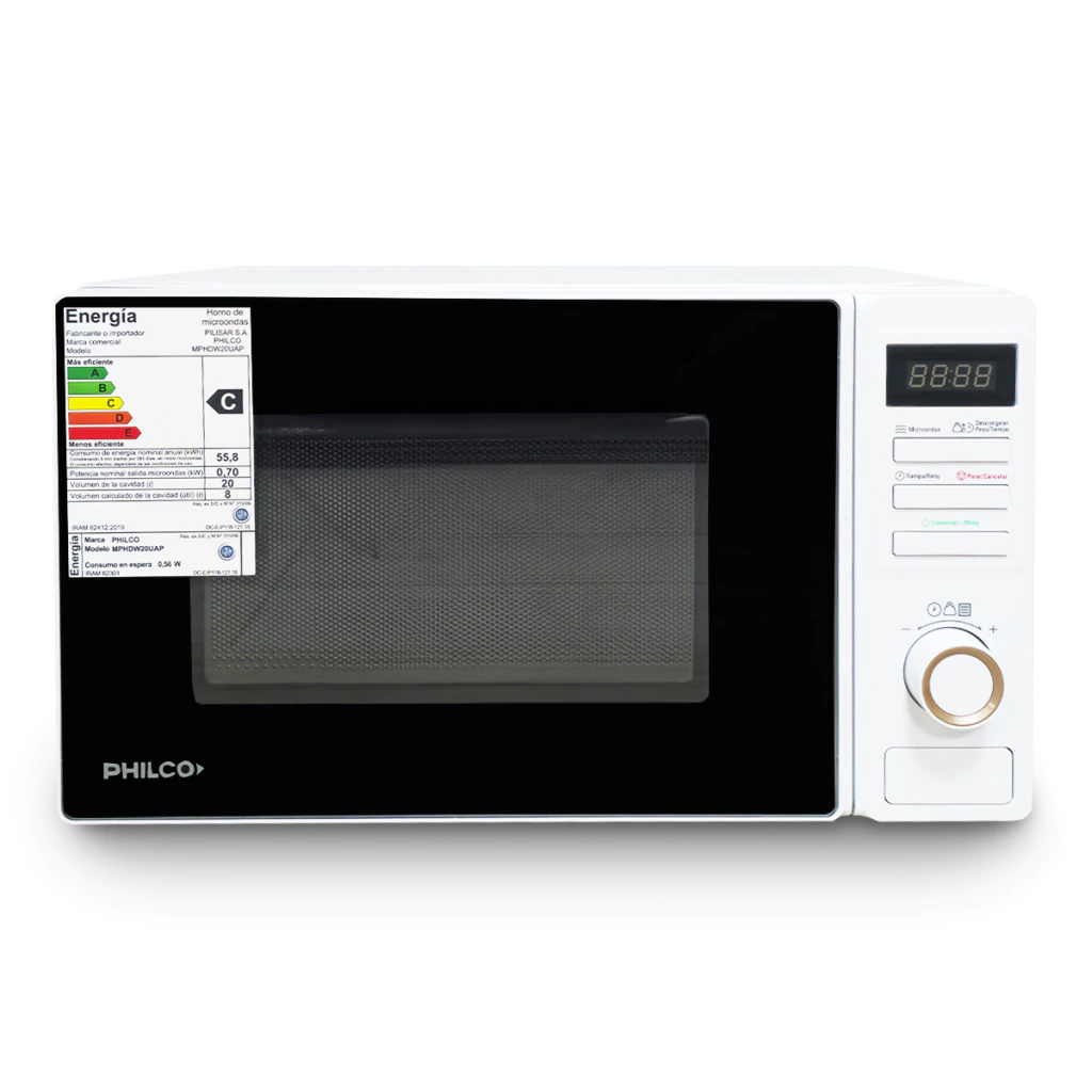 Descubrí el Microondas Digital Philco mphdw20uap, la solución práctica y eficiente para tu cocina. Con un diseño moderno en color blanco y capacidad de 20 litros, este microondas de 700W es ideal para cocinar, calentar y descongelar tus comidas de manera rápida y segura.