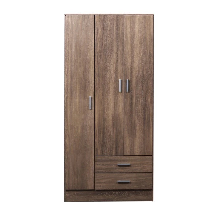 El nuevo placard Tana Plus con 3 puertas de abrir y 2 cajones externos esta fabricado con tableros de aglomerado de 15mm texturado color Moccha
