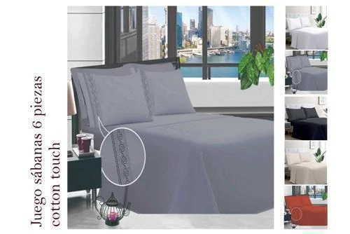 Medidas: Sabana Superior 280 cm x 260 cm, Sabana Ajustable 200 cm x 200 cm x 35 cm + 4 fundas de almohada 50 cm x 100 cm.