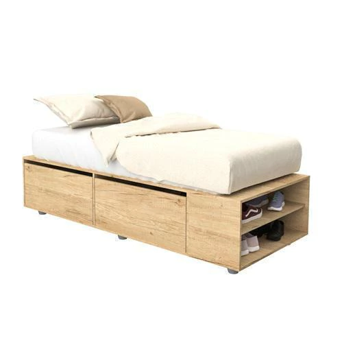 El Box Delos Duo 1 plaza DLD06rnn ofrece un diseño compacto y funcional . Sus 2 puertas basculantes laterales y estante en piecera brindan espacio adicional para almacenar, mientras su melamina de 15mm garantiza durabilidad.
