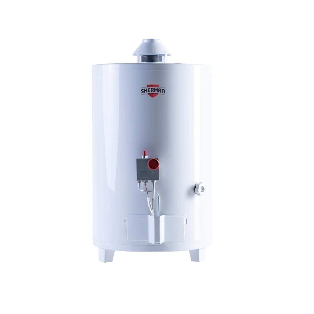 Termotanque multigas de pie 50 litros de capacidad. Conexión de agua superior. Con aislamiento de poliuretano ecológico que conserva más tiempo la temperatura del agua y ahorra más energía. Multigas