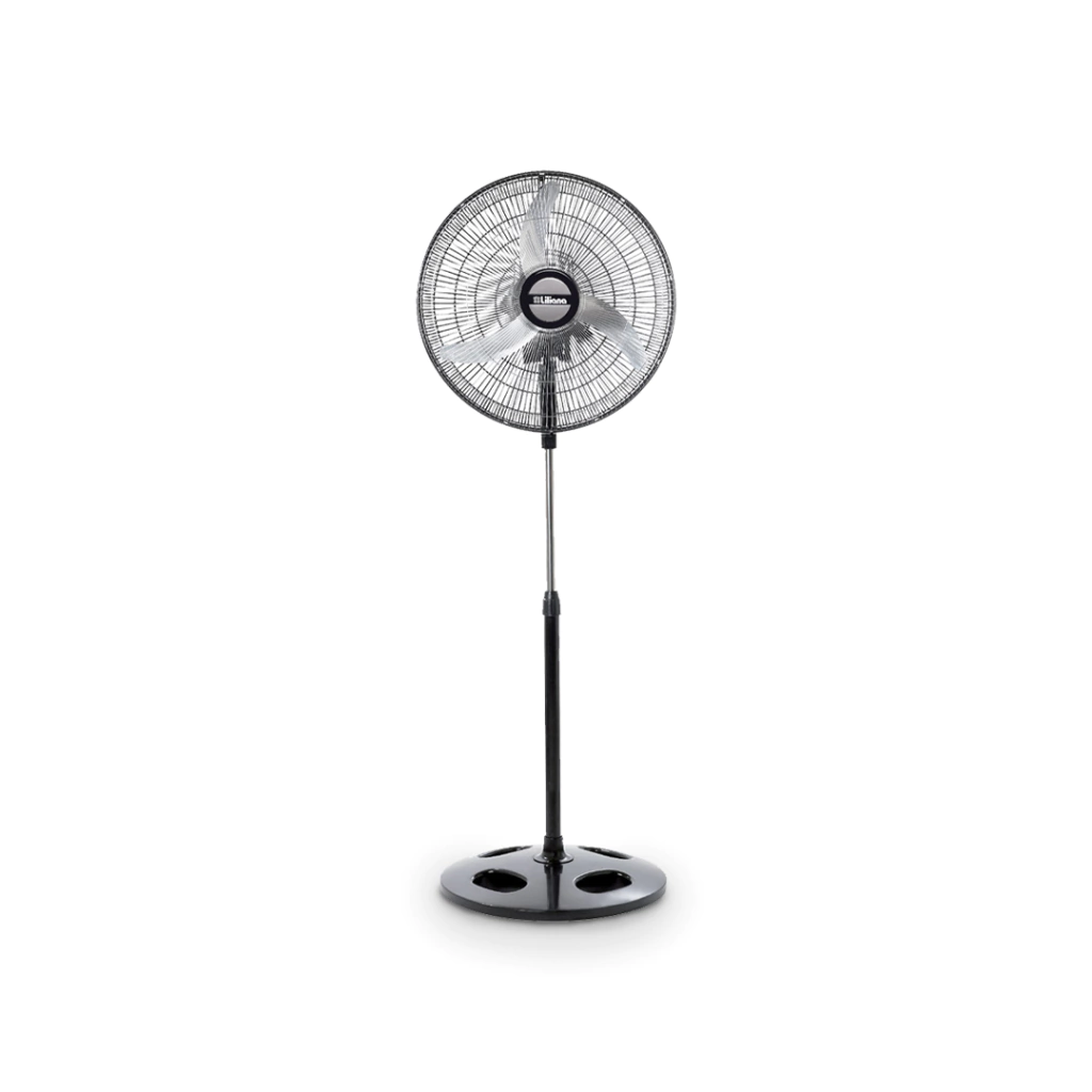 Este ventilador combina un diseño moderno con aspas metálicas resistentes y una potente parrilla negra, asegurando durabilidad y excelente rendimiento. Su motor de 90W y función orbital permiten una distribución homogénea del aire en espacios medianos y grandes.