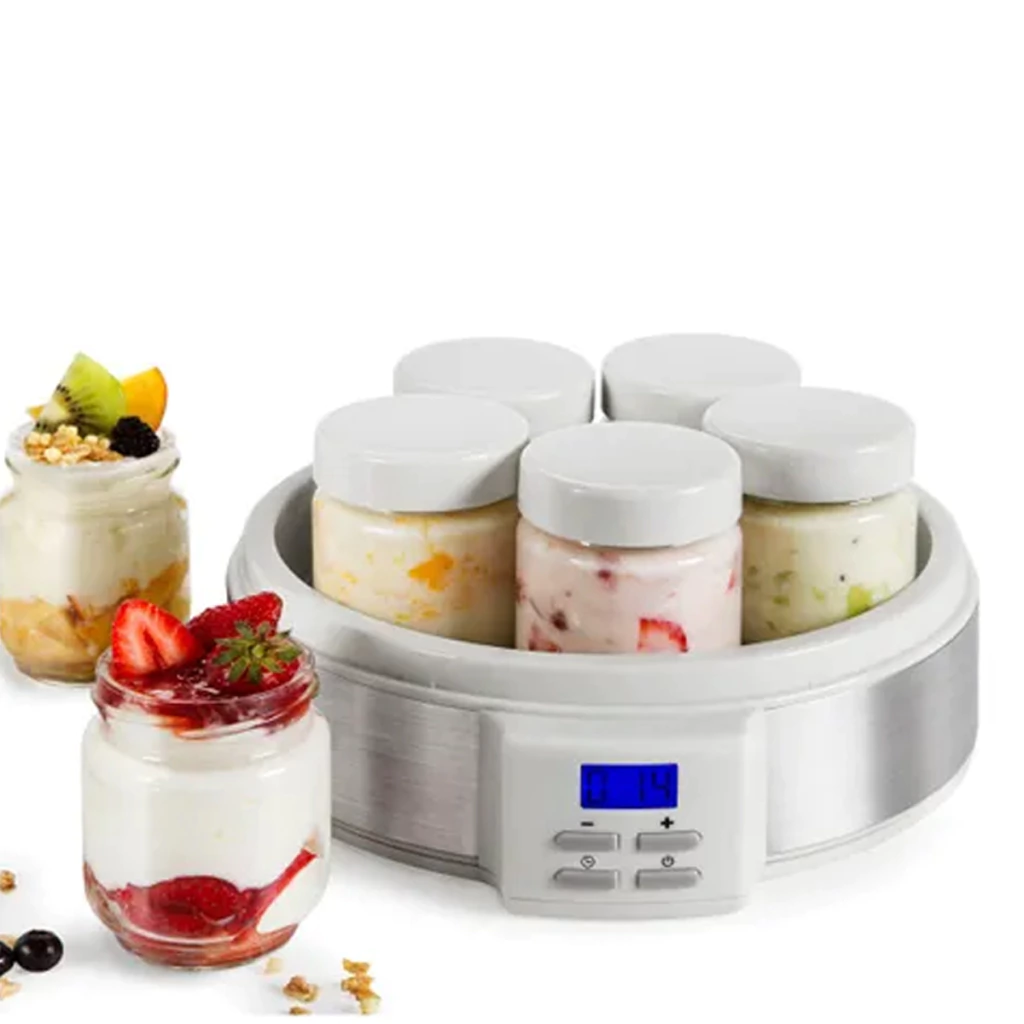 Yogurtera con pantalla LCD y temporizador digital. Incluye 7 frascos de vidrio con tapa y recetario exclusivo. Podés programar el tiempo de fermentación para lograr la textura y acidez que prefieras. Solo necesitás leche y fermento. Prepará yogur casero en 8 horas: colocá los frascos, encendé el equipo y dejá que haga su trabajo mientras dormís. ¡Disfrutá tus sabores favoritos cada día!